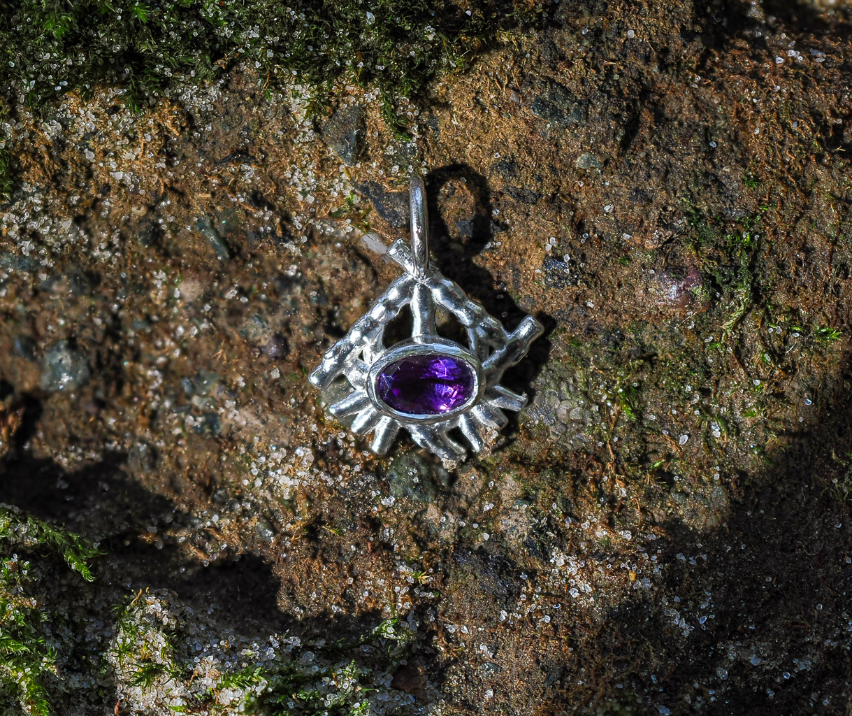 L’inspiration vient du lien profond qui nous uni, nous les êtres humains, à la nature. Ce lien a donné naissance à des traditions immémoriales et variées comme : l’animisme, le paganisme, le chamanisme, la sorcellerie, etc… Les pièces que j’ai imaginées ont été conçues visuellement comme un enchevêtrement de brindilles ou de branchages (comme du bois mort ou du bois flottant) et de petits os, dans des structures délicates. Dans ces enchevêtrements, les ossements peuvent remplacer les branches et les branches peuvent remplacer les ossements.