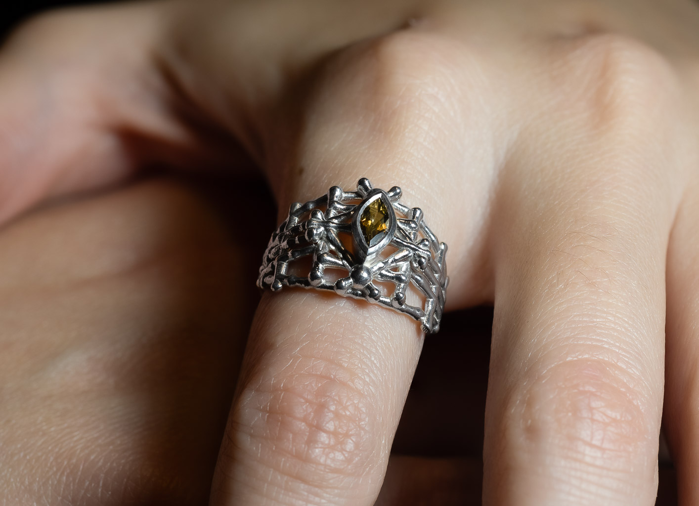 So, I focused on 2 things to create this collection: bones and twigs. The pieces are designed to look like a delicate tangle of small bones and little branches (dead or flotting wood). In these tangles, the bones can replace the twigs and the twigs can replace the bones. Some are taking the form of amulets or talismans, while others are shaped like spirits or supernatural creatures.