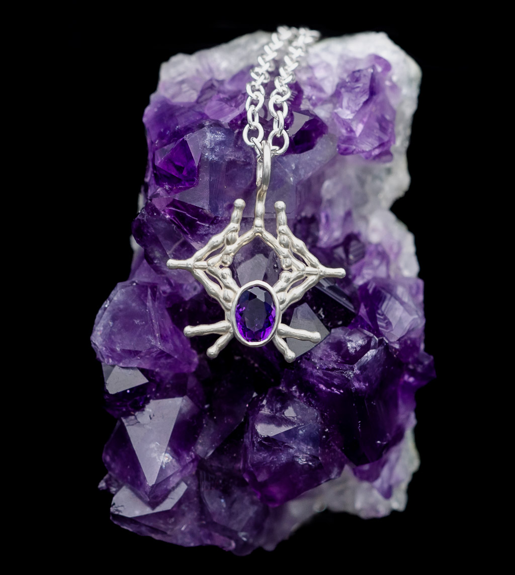 All the pieces are made in sterling silver and set with semi-precious stones.